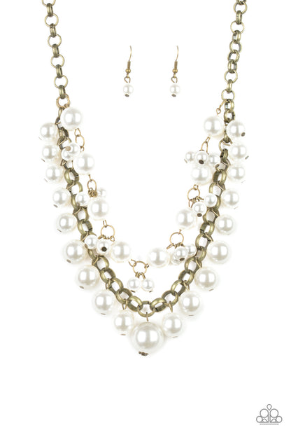 BALLROOM Service Brass and Pearl Necklace Paparazzi Accessories