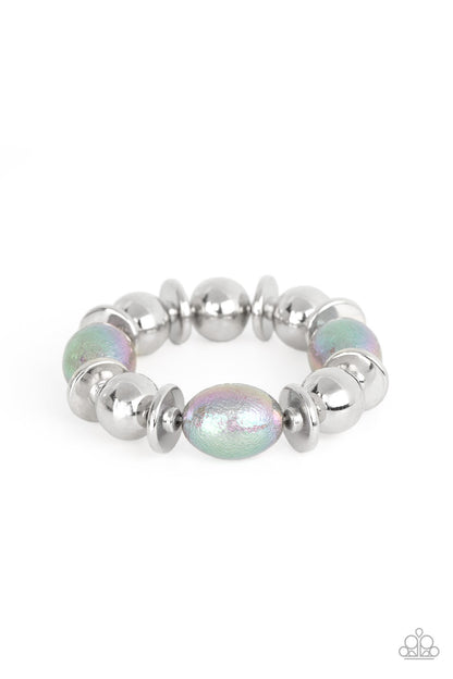 Paparazzi Big League Luster - Silver Iridescent Stretchy Bracelet