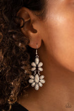 Encased in sleek silver frames, refreshing white stone teardrop frames delicately link into a wildly wonderfully floral pattern. Earring attaches to a standard fishhook fitting.