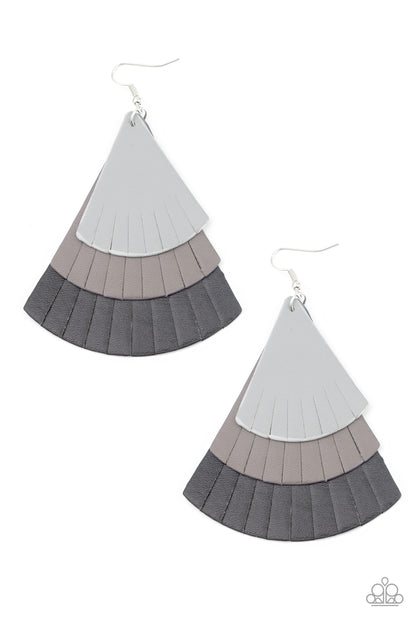 Paparazzi Earring ~ Huge Fanatic - Black and Gray Leather Earring