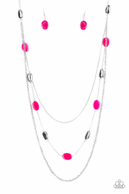 Paparazzi Barefoot and Beachbound Pink Long MultiLayer Necklace