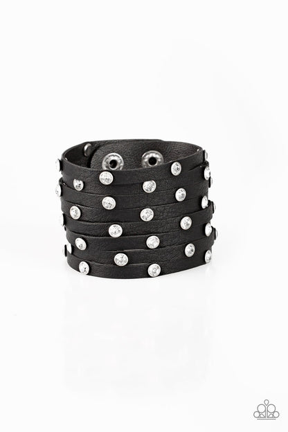 Paparazzi Bracelet ~ Sass Squad - Black Leather Band Snap Bracelet