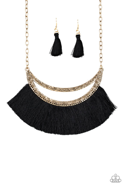 Paparazzi Necklace ~ The MANE Event - Gold and Shiny Black Thread Fringe Necklace
